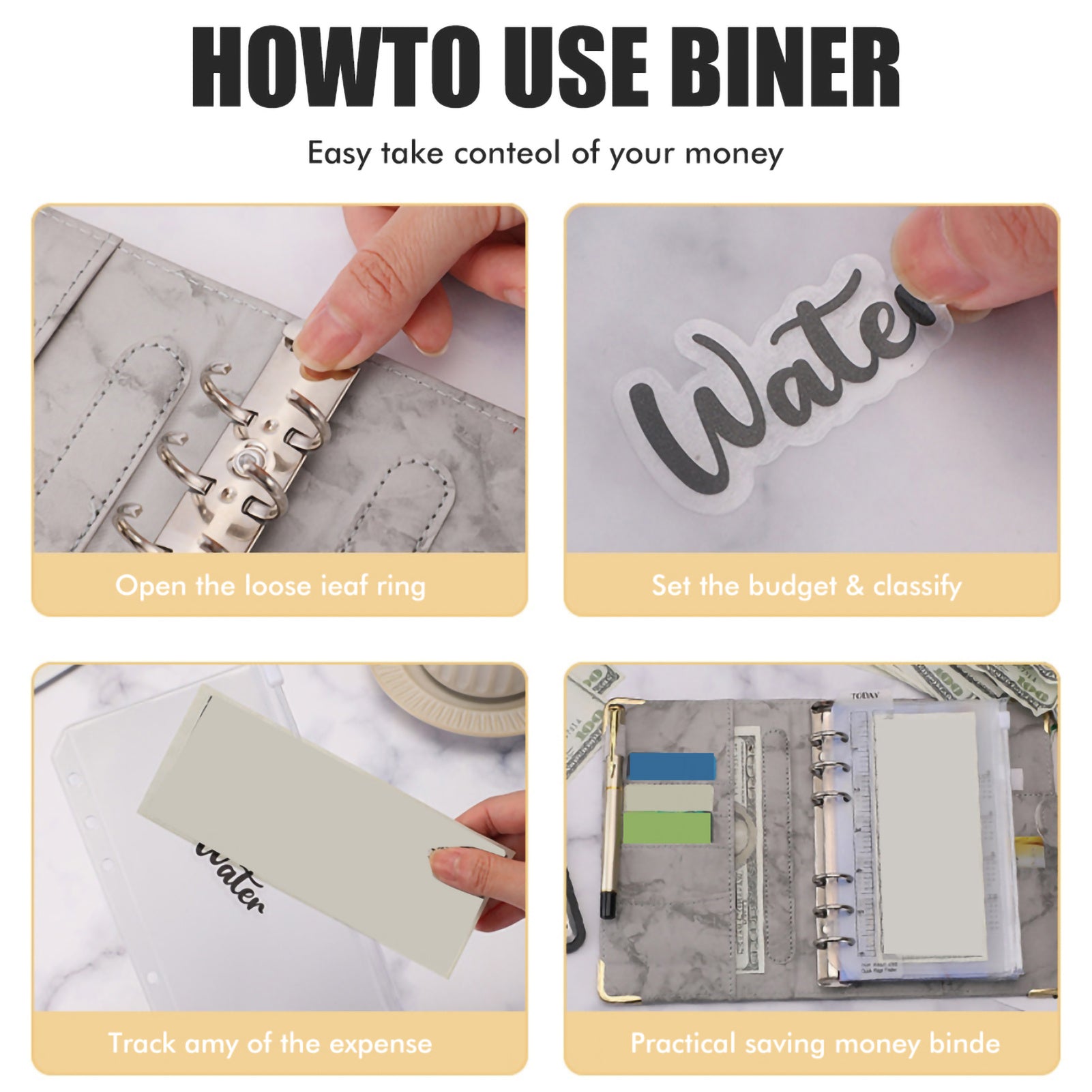 Item Type: A6 PU Leather Budget BinderMaterial: PU LeatherProduct Color: BlackSize: Approx. 19 x 13cmWeight: Approx. 420g