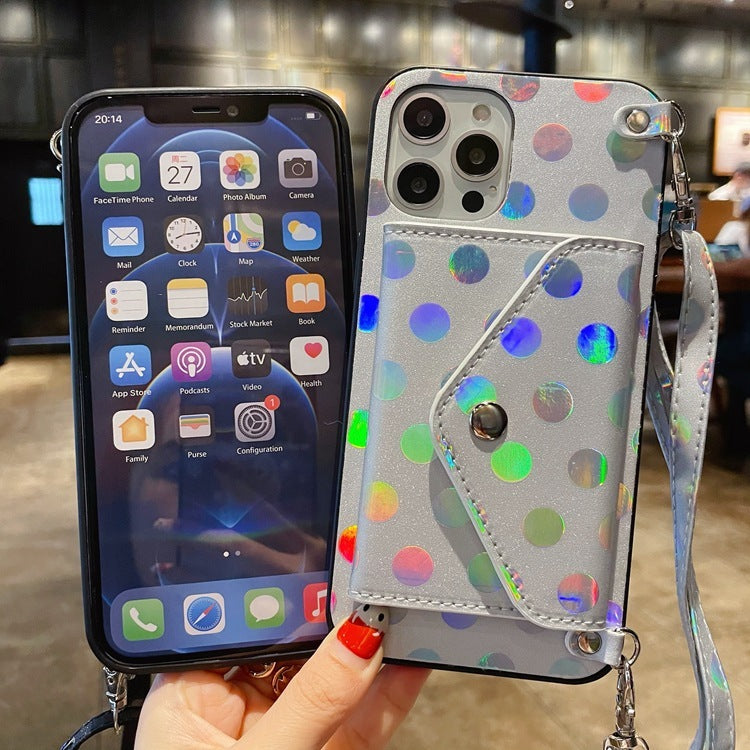 Applicable Polka Dot Crossbody Change Card Holder Phone Case Multifunctional Back Cover Card Holder