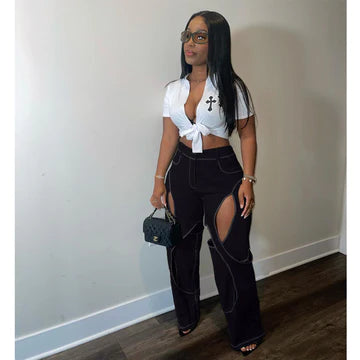 Cotton Dough Twist Hollow Casual Pants